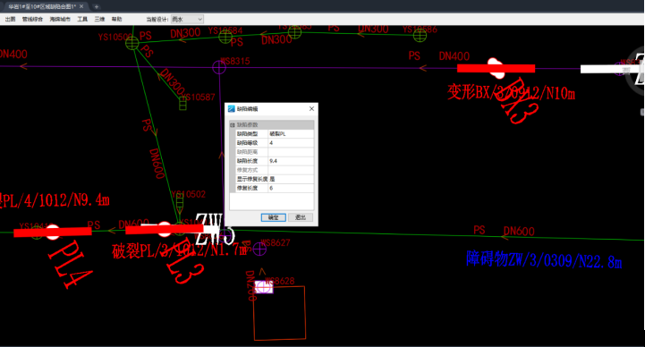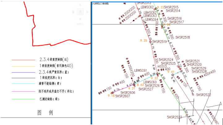 重庆案例: 通过软件中的识别勘测图,将图纸中的管线和井数据以及缺陷信息一键读取。
